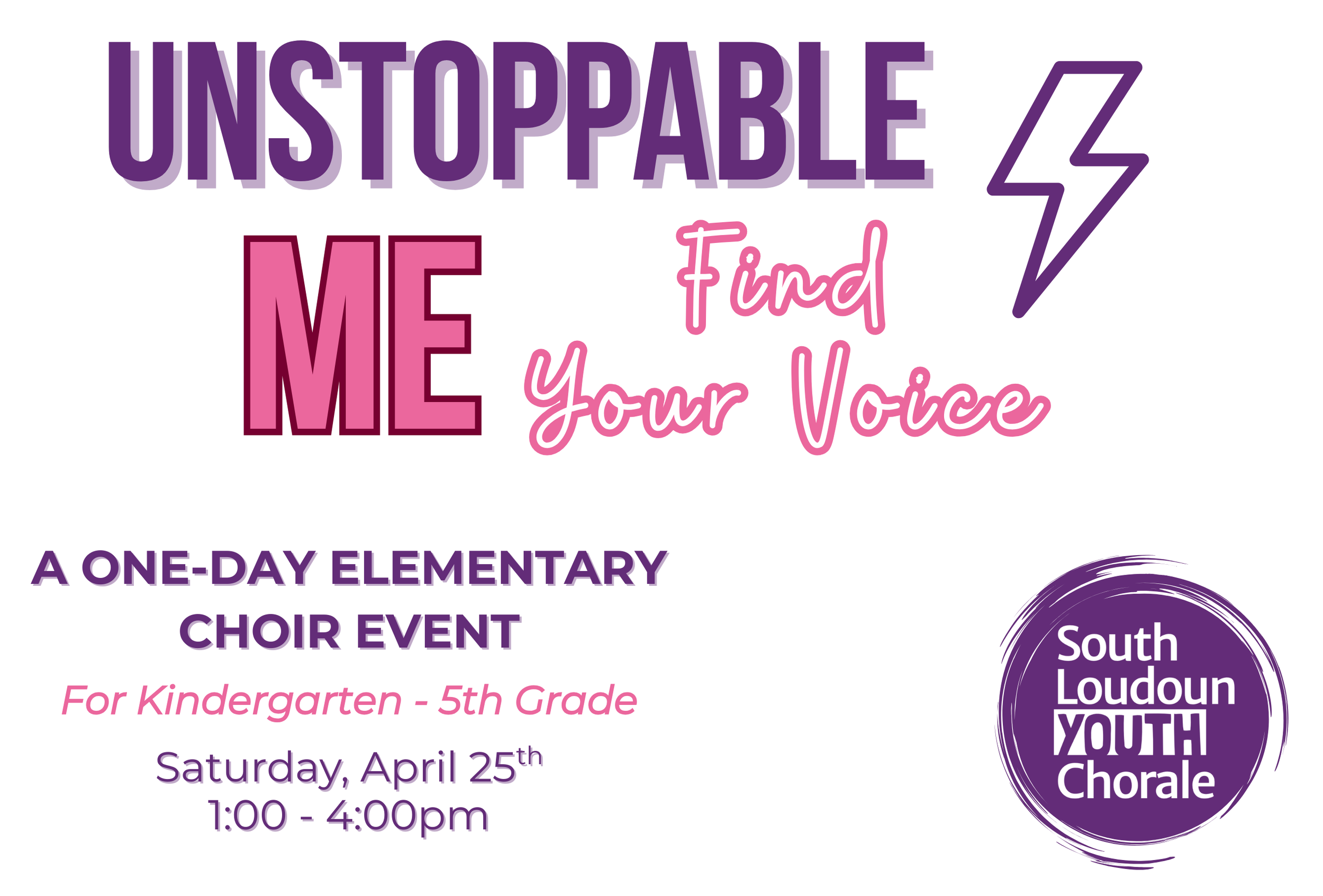 Join us for a special one-day event on Saturday, April 25th — designed to give young singers a taste of our exciting “Unstoppable Me” summer program!